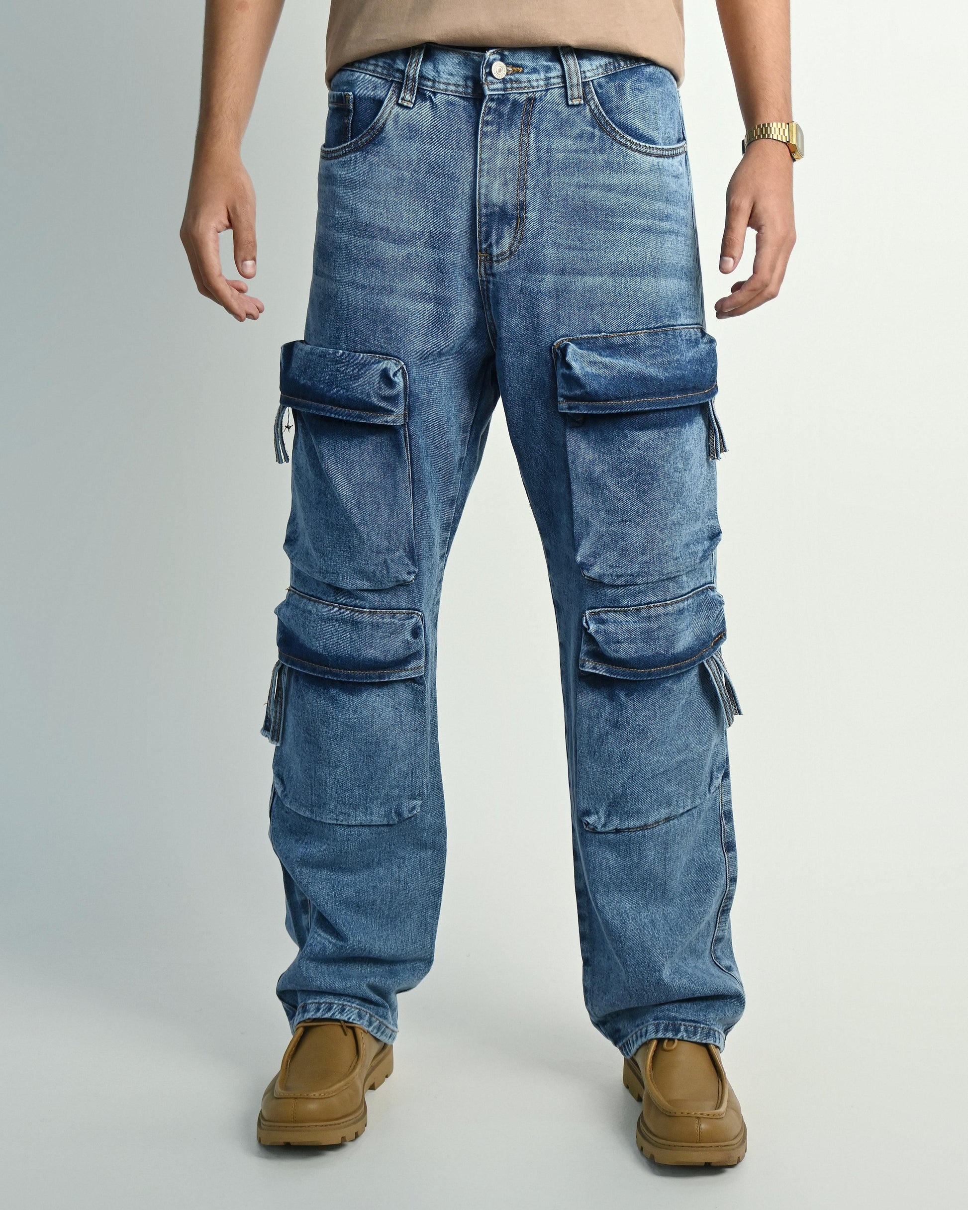 Este jean cargo redefine lo utilitario con bolsillos amplios que aportan funcionalidad y estructura visual.